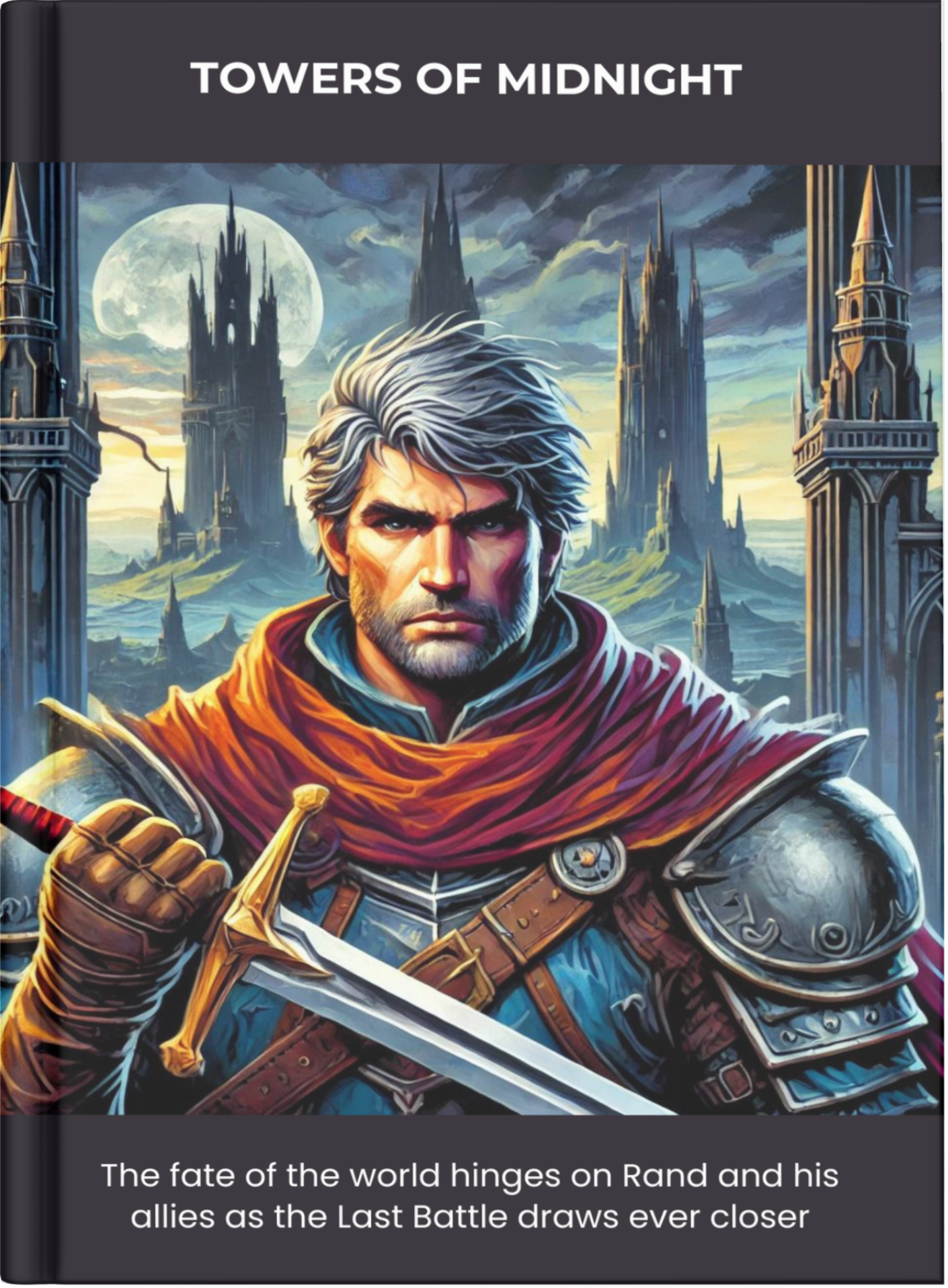 Towers of Midnight is the thirteenth book in the Wheel of Time series by Robert Jordan and Brandon Sanderson. The novel continues the epic fantasy saga, focusing on the final preparations for the Last Battle against the Dark One. Key characters such as Rand al'Thor, Mat Cauthon, Perrin Aybara, and Egwene al'Vere face personal and external challenges as they prepare for the ultimate confrontation.